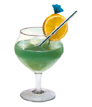 3/10 Molinari Sambuca Extra, 4/10 Citroensap, 1/10 Blue Curaçao, 2/10 Amaretto