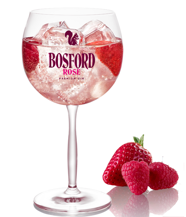 Vul een ballonglas met ijsblokjes. Voeg 5cl. Bosford Rose Gin en 20cl tonic toe en garneer met vers rood fruit