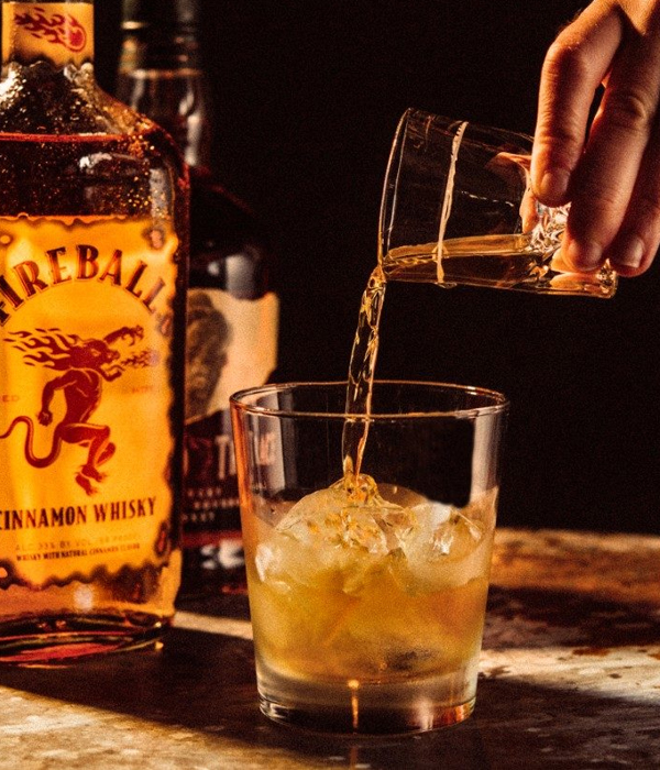 Mix de Fireball Whiskylikeur en de bourbon whisky in een gelijke verhouding en voeg naar smaak ijsblokjes toe.