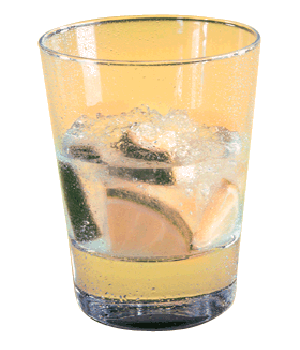 Limoen in 5 of 6 stukjes snijden en crushen in het glas