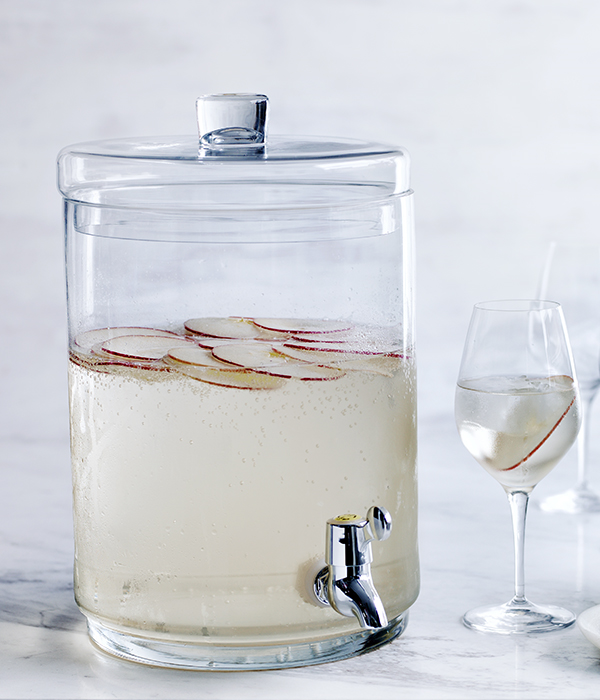 Combineer de sauvignon blanc, het bruiswater en de likeur in een 2-literkom en voeg de appel toe. Serveer in met ijs gevulde wijnglazen.