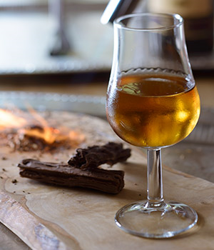 Vul een mixing glas met de ingrediënten en veel ijs en roer deze voor twintig seconden. Roer met de bolle kant van de lepel tegen het glas aan en maak rondjes waarbij de bolle kant van de lepel continue het glas aanraakt. Schenk vervolgens zonder ijs uit in een klein borrelglaasje en zet deze ook op het plankje. Pak een brander en zet deze op een lage vlam. Steek de houtsnippers met kruidnagel en citrusschil in brand. Zorg dat deze vlam vat en dek dan af met een whiskyglas, zodra het geheel begint te roken. De rook wordt gevangen in het glas en geeft diepgang aan het eindresultaat. Draai het whiskyglas om en schenk de cocktail vanuit het borrelglaasje in het whiskyglas. Neem eerst een hapje chocolade en vervolgens een slokje van de cocktail. Gegarandeerd een smaakexplosie.