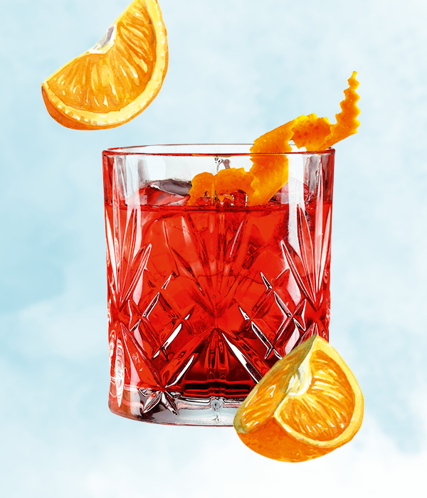 Meng alle ingrediënten en roer rustig door. Garneer met een sinaasappelschijfje.