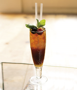 Een beertail op basis van Kasteel Donker. Dit Belgische bier is een quadrupel; sterk (bovengisting), zoet en licht bitter donker bier. Hoewel het eerste Kasteelbier in 1989 werd gebrouwen, stamt de brouwerij uit 1811 en produceerde het in eerste instantie voornamelijk pilsener. Vanaf 1955 wordt de focus verlegd op de zwaardere donkere bieren. De Kasteel Donker is behoorlijk moutig en zoet, maar met een alcohol percentage van 11% is dit een verraderlijk bier! Door de toevoeging van een klein beetje cognac wordt de smaak van karamel meer verlegd naar chocolade. Om het zoete enigszins in te perken gebruik ik 5 ml balsamico. Ook deze mix is simpel te bereiden; voeg alle ingrediënten samen in een groot glas met ijs. Roer voorzichtig en garneer met wat rood fruit.