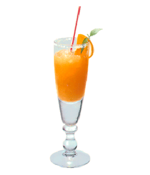 De rand van een smal glas besuikeren en vullen met vergruisd ijs. Schenk de gemengde ingrediënten in, garneer en voeg een scheutje bruine Rum toe.
