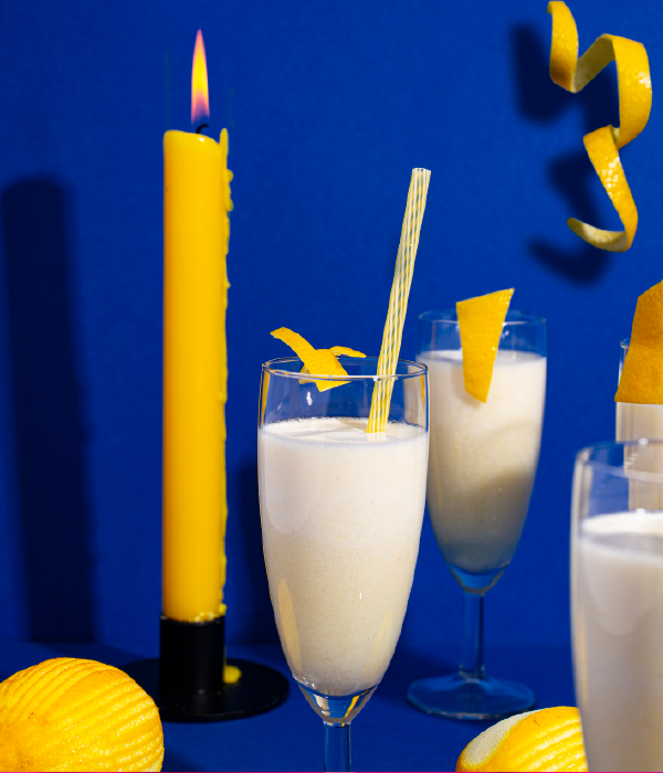 Snijd met een dunschiller brede repen schil van een citroen en snijd ze in stukken. Mix de limoncello, vodka en ijssoorten met de mixer in. Klop dan beetje bij beetje de prosecco erdoor. Schenk in de flûtes en garneer met citroenschillen en rietjes.