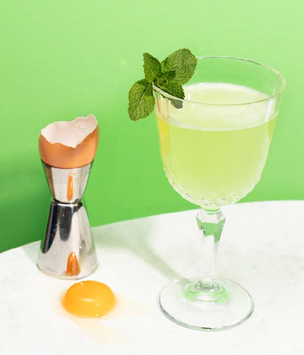 Schenk alle ingrediënten in een shaker en dry-shake 15 seconden. Voeg wat ijs toe en shake nog eens 15 seconden. Double-strain in het coupetteglas. Garneer met een takje munt en eventueel gedroogde eetbare bloemen.