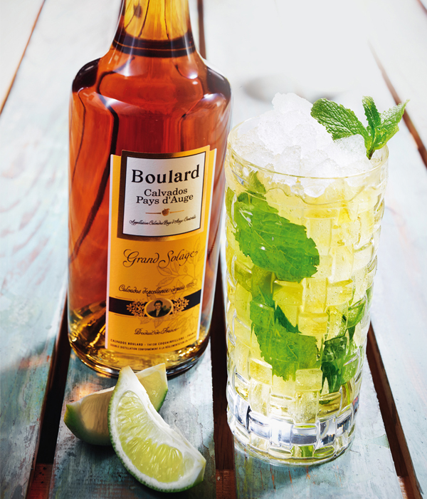 Fruitige cocktail met frisse appelsmaak. Doe 2 partjes limoen en 8 muntblaadjes in een glas. Voeg er 10 ml. MONIN rietsuikersiroop bij. Stamp goed aan met een stamper. IJsblokjes toevoegen samen met 40 ml. BOULARD Grand Solage. Vul aan met Ginger Ale.