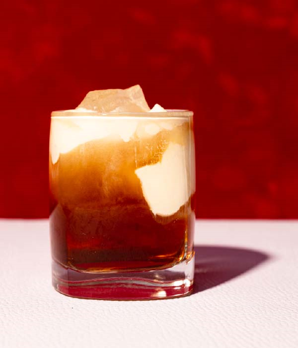 Klop de slagroom 10-15 seconden met de mixer – liever niet langer. Doe de wodka en de koffielikeur in een rocksglas en roer 25 seconden totdat de mix koud is. Schenk de cocktail door een zeef in een met één blok ijs gevuld rocksglas en schenk of schep er de kort geslagen room op (die hoeft niet stijf of lobbig te zijn, hoogstens iets stevig).