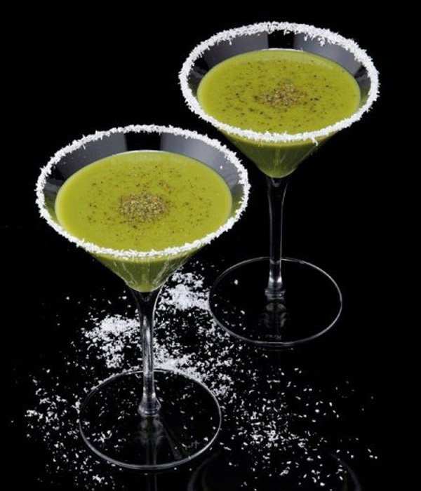 Doe de Bottega Pistacchio en wodka in een cocktailshaker, samen met ijsblokjes en een scheutje absinth. Schud krachtig gedurende een paar seconden. Serveer de cocktail in een gekoeld martiniglas met pistachenoten en garneer de rand van het glas met kokosschaafsel.
