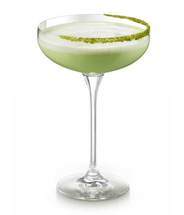 Schenk alle ingrediënten in  een shaker gevuld met ijs. Hard shaken en strainen in een martiniglas. Garneer de rand van het glas met een beetje Matcha poeder.