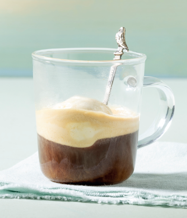 Schep een bolletje vanille-ijs in een glas en schenk er de espresso over. Schenk de Vecchio Amaro del Capo over de espresso.