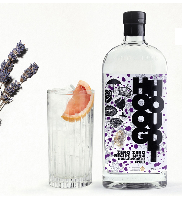 Schenk 50ml Hooghoudt Zero Zero 24 in een longdrinkglas gevuld met ijs. Voeg vervolgens 150 ml tonic toe, het sap van een kwart grapefruit en garneer met een schijfje grapefruit.