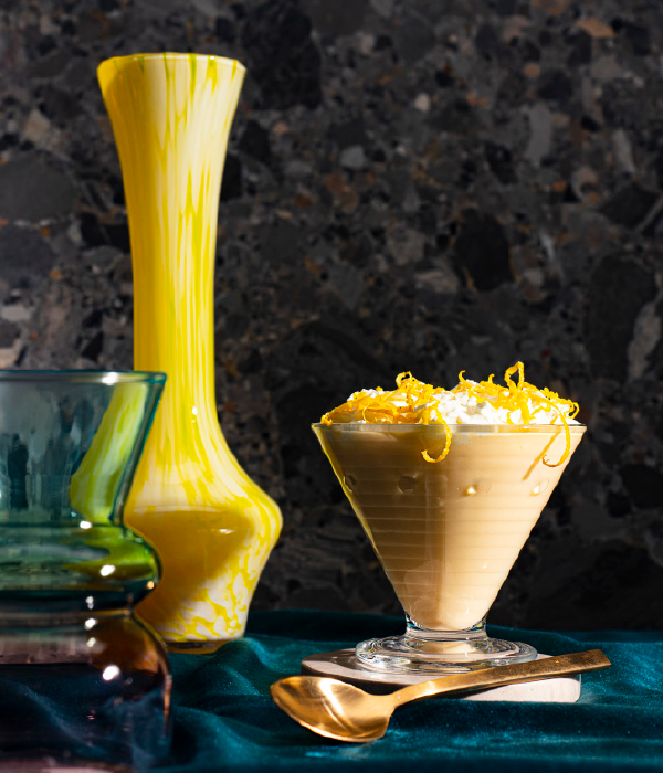 Rasp de gele schil met een zesteur van de citroen en pers de vrucht uit. Shake 1 theelepel citroensap met enkele ijsblokjes en de rest van de ingrediënten 10-15 seconden in de shaker tot het goed koud is. Schenk – zonder het ijs – in het glas, maak een swirl met wat extra slagroom en bestrooi met citroenrasp.