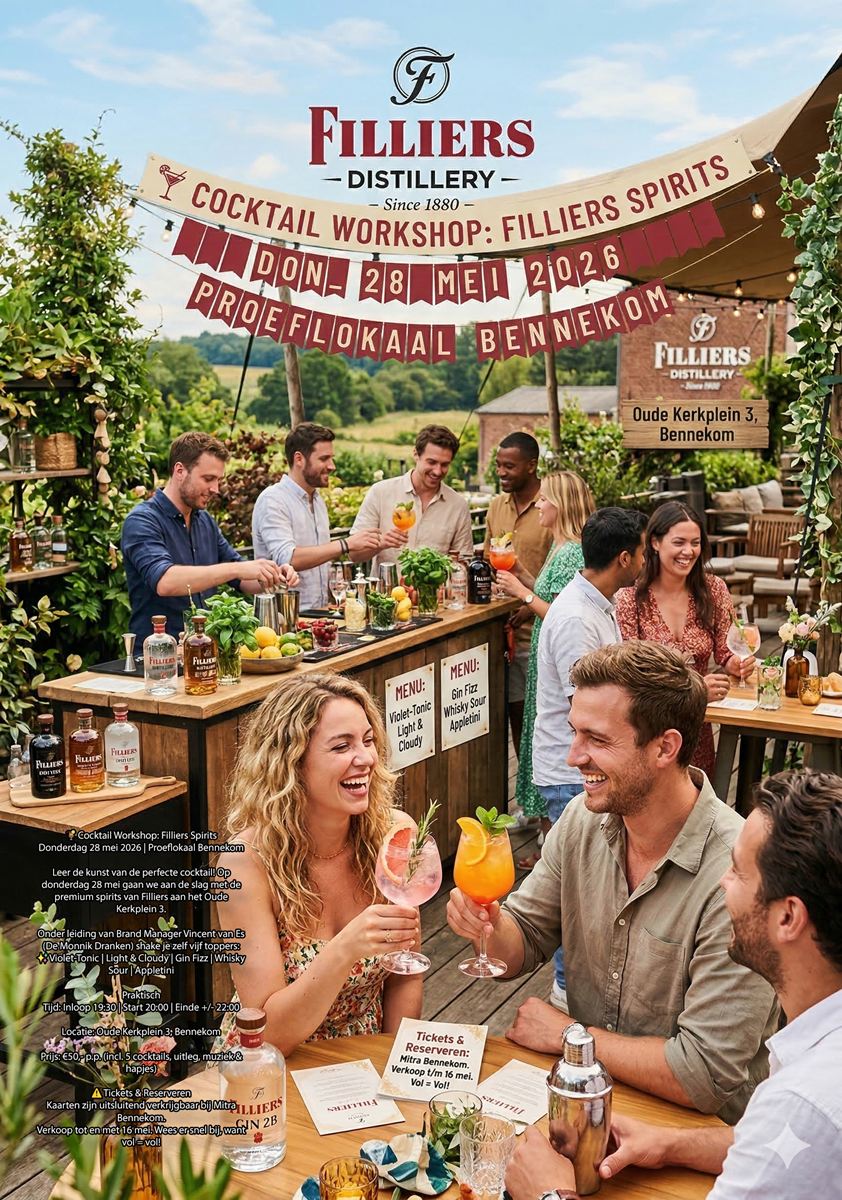 Leer de kunst van de perfecte cocktail! Op donderdag 28 mei gaan we aan de slag met de premium spirits van Filliers aan het Oude Kerkplein 3.